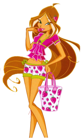Bloom a la tenue bleue avec petite 2 petite brettelles bleue.Les aille de bloom son dotée d'une rapiditée imprésionnante elle a 2 barrettes qui tienne ses cheuveux les barettes son en forme de coeur.Elle a un collier bleue en forme de coeur son colier retient le masque de daphnée sa soeur...Stella a un haut qui a 2 bretteles jaunes le haut a 2 traits bleu qui forme une étoile.Son bat est une jupe orange et jaune elle a plusieures pétales en tissu.Ses ailles son jaunes et son munie d'une grande luminositée.Flora a un haut qui est très ressemblant a celuio de bloom.il est rose.